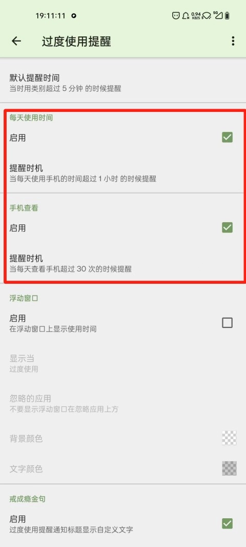 软件里面还有个过度使用提醒,使用达到一定时间后就会主动提醒我们减少手机使用时长。