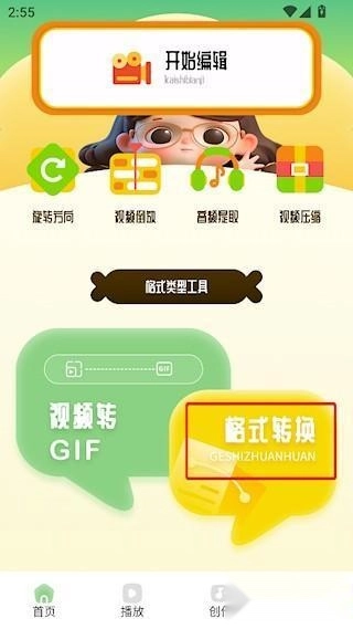 1、启动熊猫微剪应用,在首页找到格式转换的功能入口,点击该入口进入功能页面