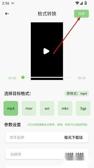 3、选择目标格式,点击右上角的转换