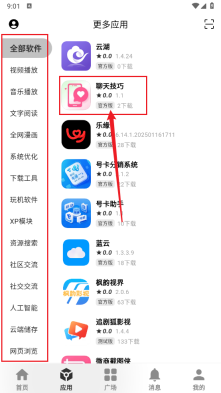 2、也可以直接进入应用区域,根据右侧的分类来挑选所需的应用。