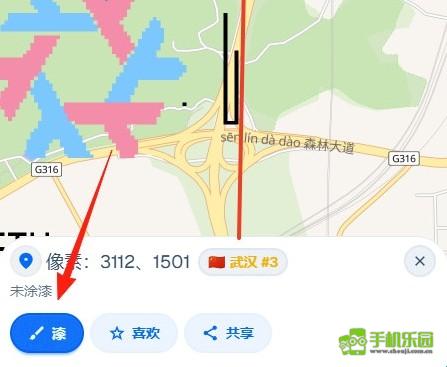 2.用户可以随意在全球地图上选择地点,并用像素风格的图案进行绘制。