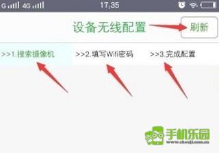 6、点击进入到WiFi配置界面之后,我们点击刷新按钮搜索摄像机,然后填写WiFi密码之后就完成配置了,这样设备就添加完成了。