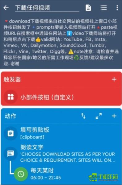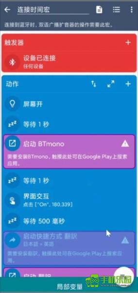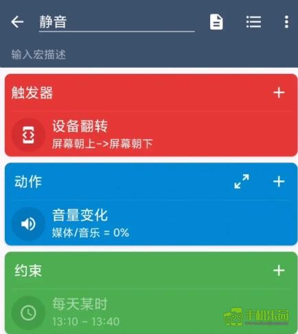 建立一个基础的功能,需要填写3个步骤,MacroDroid的触发器、动作和例外条件。