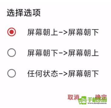 软件的触发器支持非常多的条件,这里来演示一下翻转屏幕自动静音(你也可以设定其他想要的操作)。选择好设备翻转触发之后,可以看到它会问你:是从什么状态变化的时候才触发。