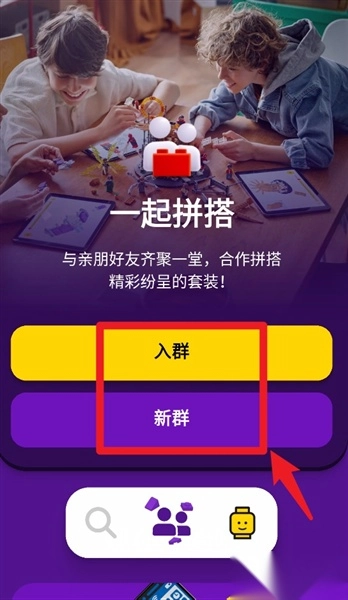 3、在“一起拼搭”页面中可选择“入群”或“新群”,邀请朋友共同加入拼搭小组,提升互动体验。