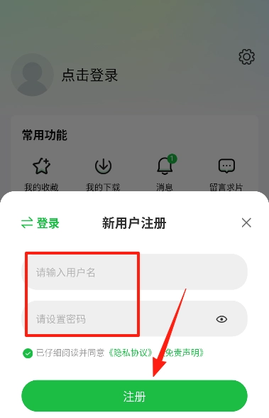 4、在注册页面随意输入一个用户名,并设置一个密码。