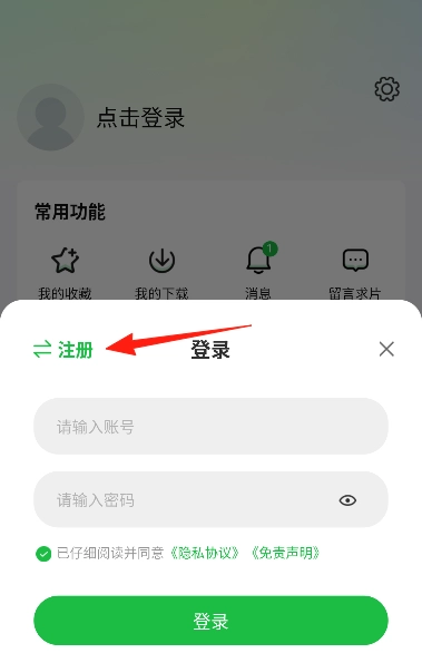 3、在窗口的左上角点击注册按钮,切换为注册模式。