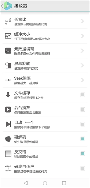-支持左右声道切换,可调节播放屏幕的大小与长宽比,具备全屏模式;文件列表和设置界面都能适配横竖屏展示。