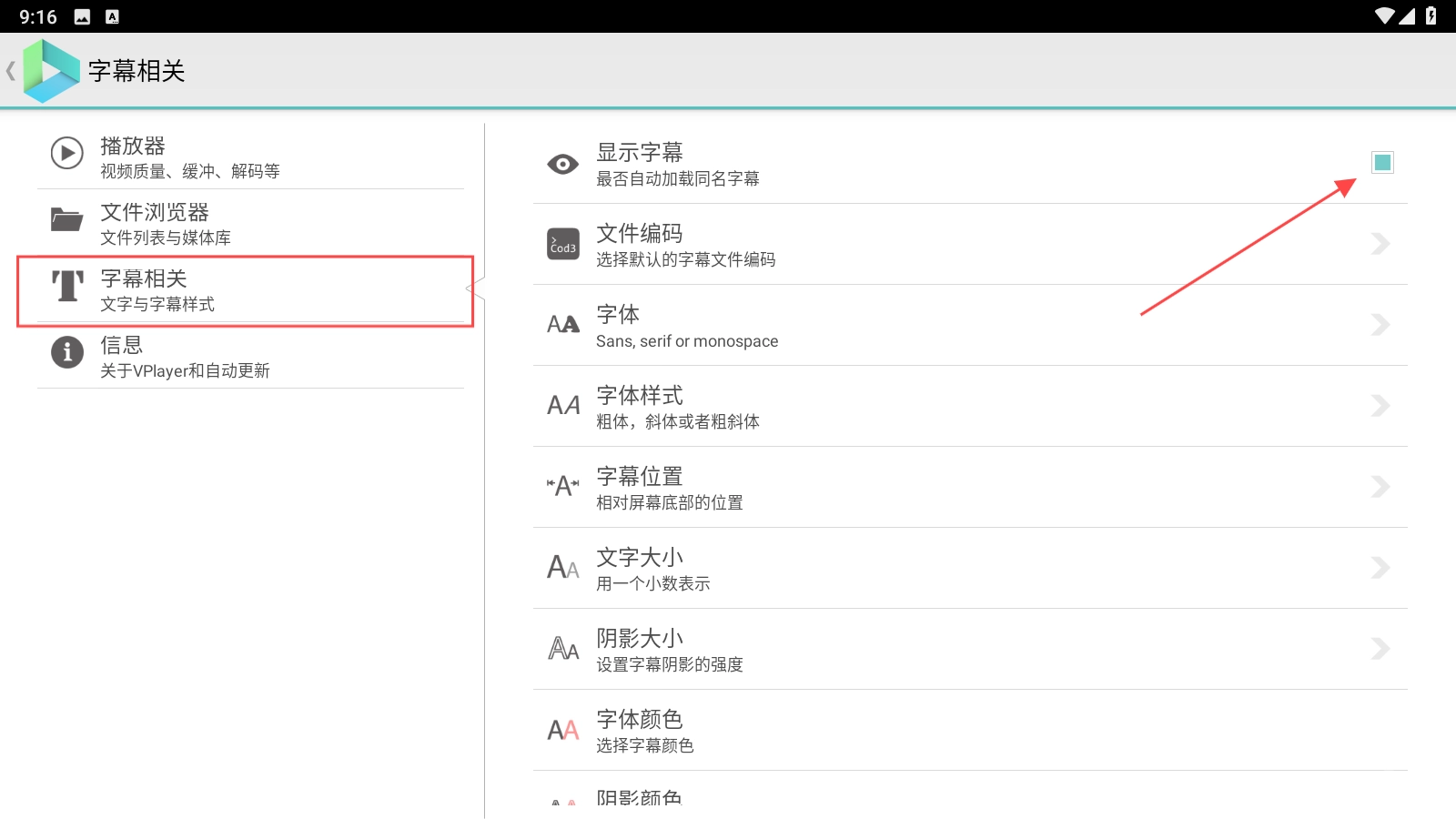 3、在字幕相关界面,可以选择【显示或关闭字幕】