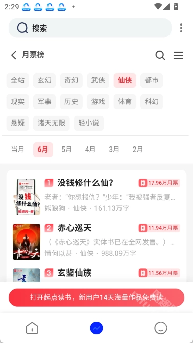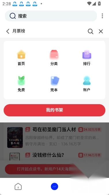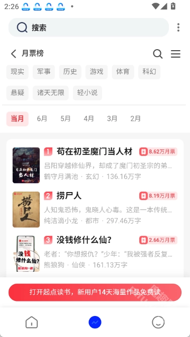 2.查看当月热门小说排行,选择你感兴趣的小说。