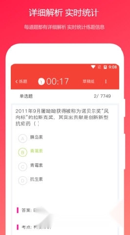 高效备考模式:配备搜索功能,能够快速找到所需练习题目;设有实时考试倒计时,帮助考生合理安排备考时间。