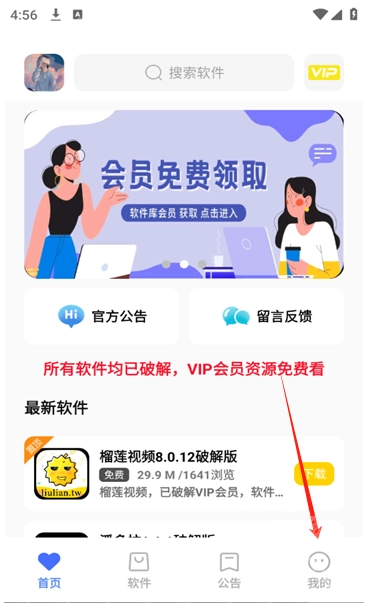 1、打开小马软件库,进入首页后点击“我的”按钮。