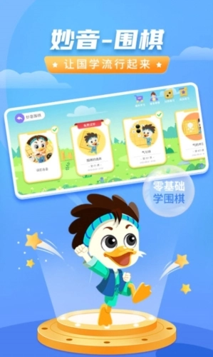 妙音围棋是一款专为围棋爱好者打造的学习软件,它能帮助孩子从零基础起步学习围棋,并且具备AI互动功能,孩子在学习过程中可以和AI小鸭人互动,让学习变得更轻松,为孩子学围棋提供了有力支持。平台上有丰富的围棋知识供大家学习了解,也有许多围棋爱好者在此交流,用户可以自由匹配对手,通过实战对弈进一步学习围棋、提升棋艺,感兴趣的朋友不妨来体验一下!