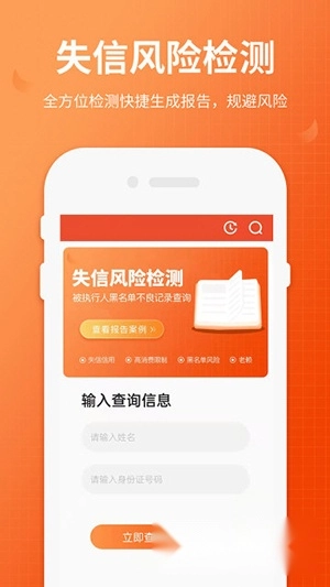 可通过姓名与身份证信息,一键精准查询黑名单、法院被执行人、失信人及老赖相关信息,实现详细检索需求。