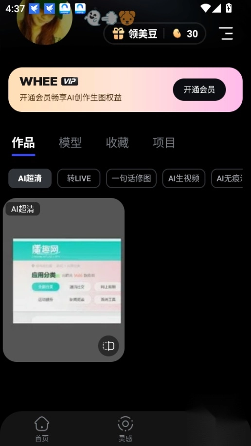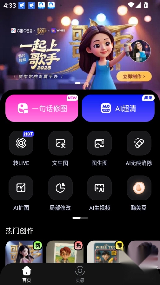 whee还具备转live、文生图、图生图、AI无痕消除、AI扩图、局部修改、AI生视频、AI改图以及平面转3D等功能,此外灵感频道汇集了众多热门同款,用户在使用过程中能够直接创作同款内容,实用性很强。