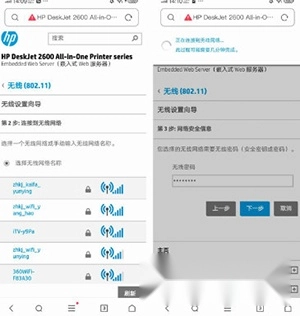 如果您的打印机是刚出厂且尚未进行任何配置,您可以打开手机的WiFi功能,搜索并连接打印机的WiFi(WiFi名称通常为打印机型号,WiFi密码请查阅打印机说明书)。具体可参考下图: