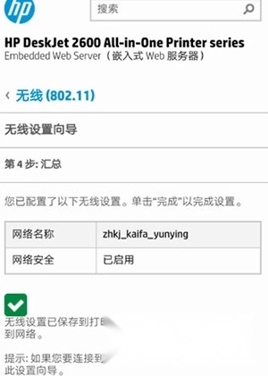 配置成功页面如下:至此打印机网络配置完成。