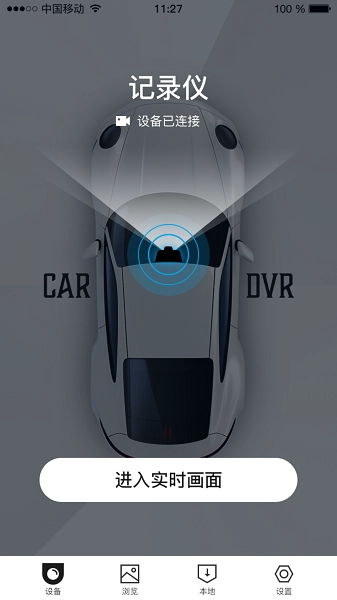 4. 可实时查看行车记录仪的当前界面,同时能够对设备的录像状态进行控制以及执行拍照操作;