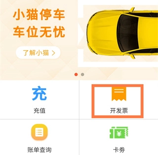 在小猫停车客户端的首页点击【开发票】。