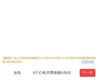 然后在【开停车发票】里选中需要开发票的订单,再点击下一步。