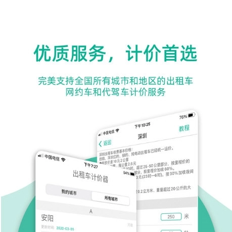 支持全国范围内所有出租车、网约车及代驾车的计价功能,可充分满足用户的各类需求。