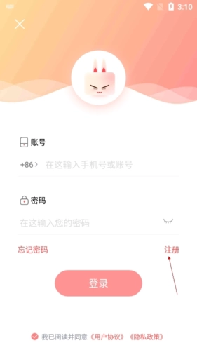 点击下方的注册按钮,输入你的手机号码和密码即可。