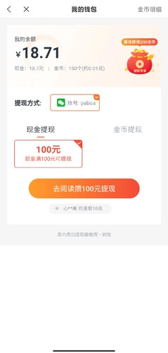 该软件的提现规则为满100元方可申请提现,提现渠道支持微信。