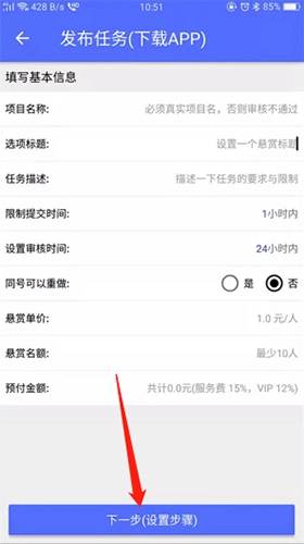 输入任务信息后点击下一步按钮