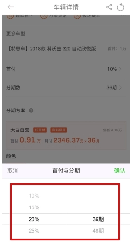 在这里可以看到【分期数】,不同的首付和分期方案都能在这里查看