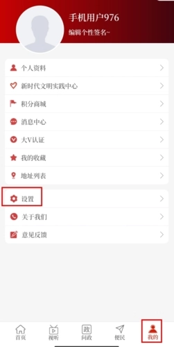 在我的页面中点击设置按钮;