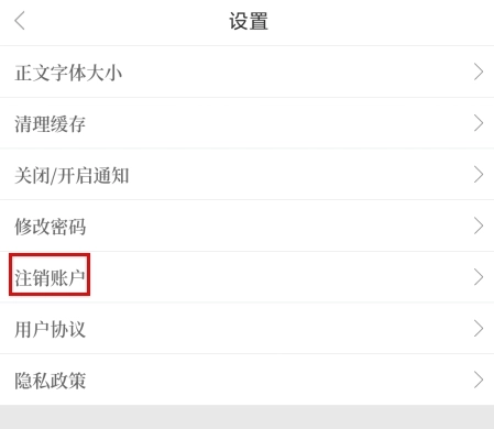 在设置页面中点击注销账户按钮;