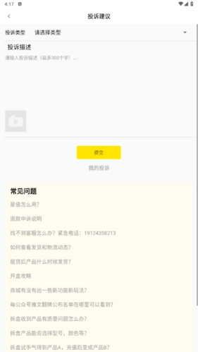 打开软件后,点击“我的”选项,接着点击“投诉建议”选项。