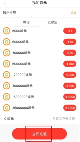 在我的呱元页面里选好想要充值的金额,接着点击立即充值按钮就行啦。