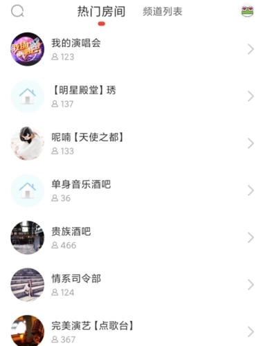 用户打开软件后,首页展示着众多房间,可挑选自己感兴趣的房间进入。
