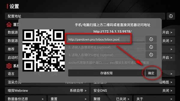4. 复制上面其中一个接口地址并粘贴到配置地址栏,点击“确定”;
