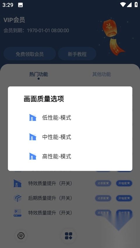 3、每种功能提供低、中、高三种性能模式选择。