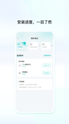 - 线上提交光伏电站安装申请,可快速实现代理商关联与电站申请的办理,安装全流程进度能实时查看。