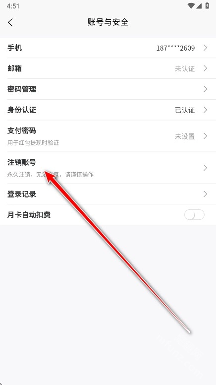 4、进入“账号与安全”页面后,找到“注销账号”选项并点击它。