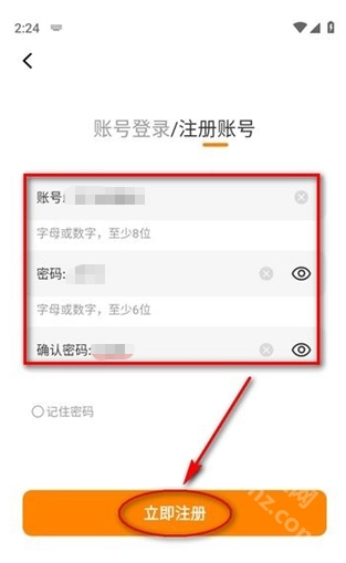 3、首次使用的新用户,请点击右侧的“注册账号”,填写账号与密码后,点击“立即注册”按钮即可。