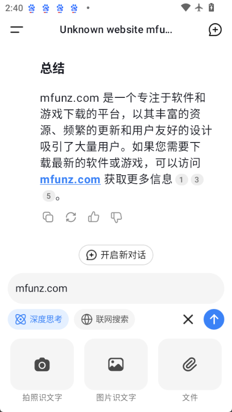 4.文件上传:支持上传 PDF、Word 文件,快速分析总结信息。