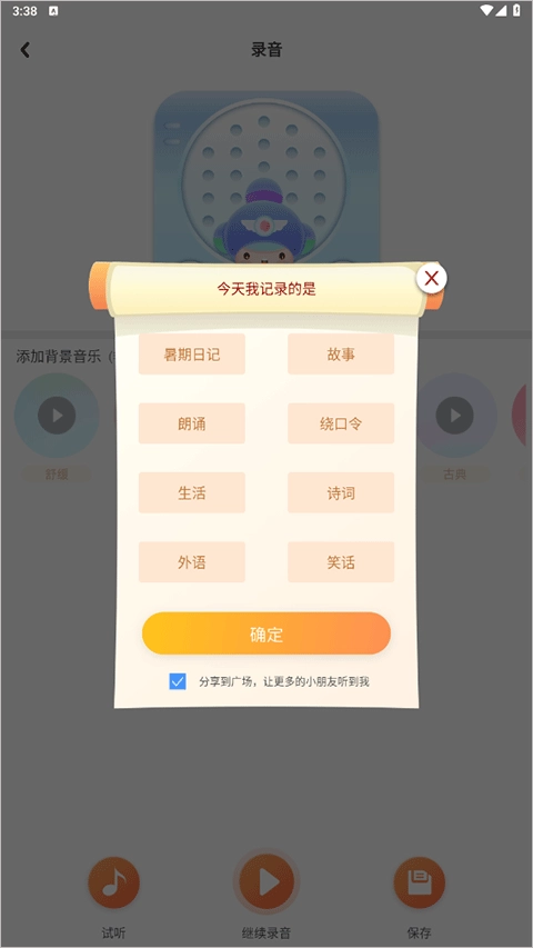 3、点击“开始录音”按钮启动录音,录制完成后点击“保存”,接着选择对应的分类,就能完成上传操作啦。