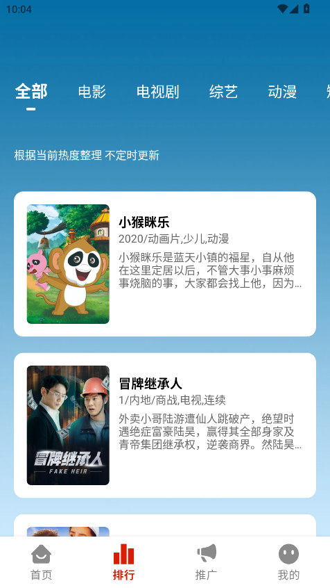 二师兄影视虽然名字听起来有点特别,但它确实是一款实实在在的手机追剧应用。它不仅能帮我们找到大量优质剧集,还能带来非常棒的观影体验!而且它的影视资源特别丰富,涵盖了电影、电视剧、综艺节目等多种类型。无论是当前热映的院线大片,还是备受关注的网络剧集,在二师兄影视里都能找到。为了让大家清楚了解近期哪些影视作品最受欢迎,二师兄影视还专门设置了排行榜,这样我们就能根据排名来挑选想看的内容了。另外,这款软件的画质表现也相当出色,影视中的各种细节都能清晰呈现,非常值得大家使用!