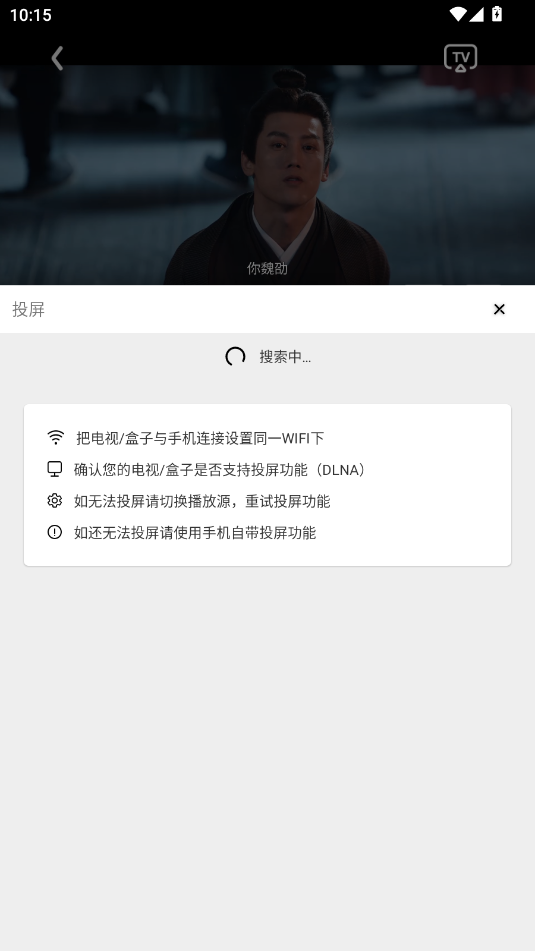 点击投屏按钮后,系统会自动搜索周边的电视设备,并显示出这些电视设备的名称。