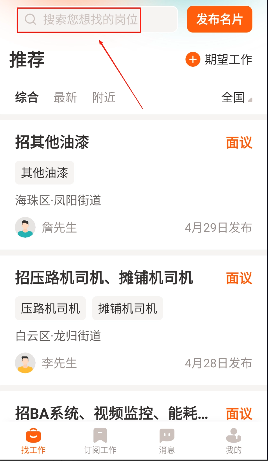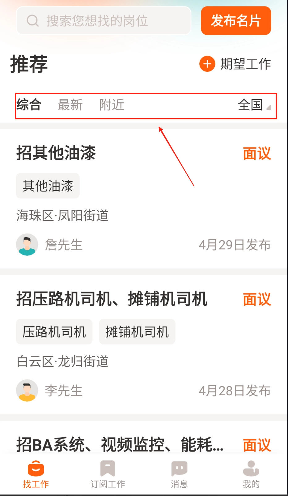 3、使用筛选工具,通过地域薪资工种等条件快速定位目标岗位。