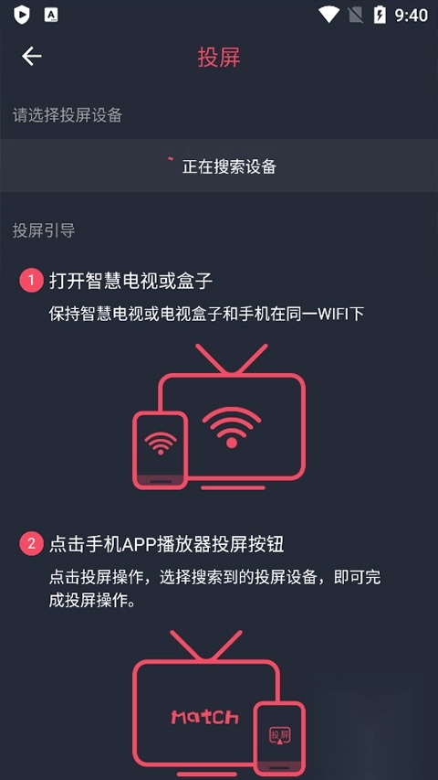 2. 在动漫播放页面点击右上角的投屏按钮,如未显示可轻触屏幕,软件会自动搜索并连接可用设备。