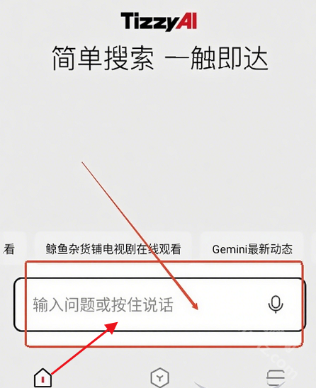 1、打开手机上的Tizzyai软件,在首页文字框输入