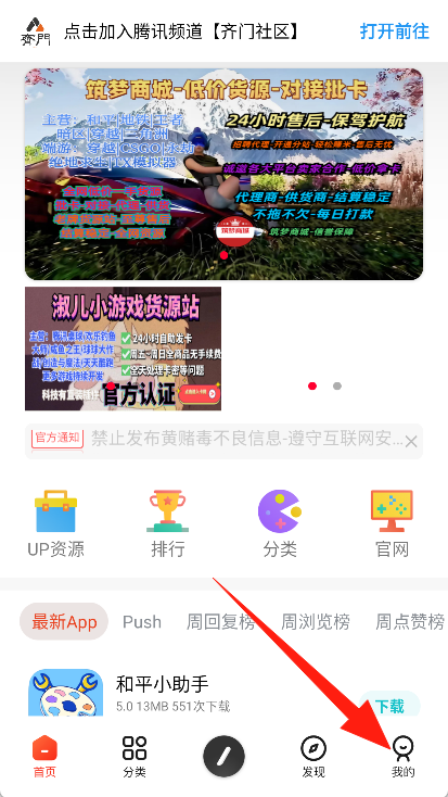 1. 打开齐门社区,并点击底部的“我的”选项卡。