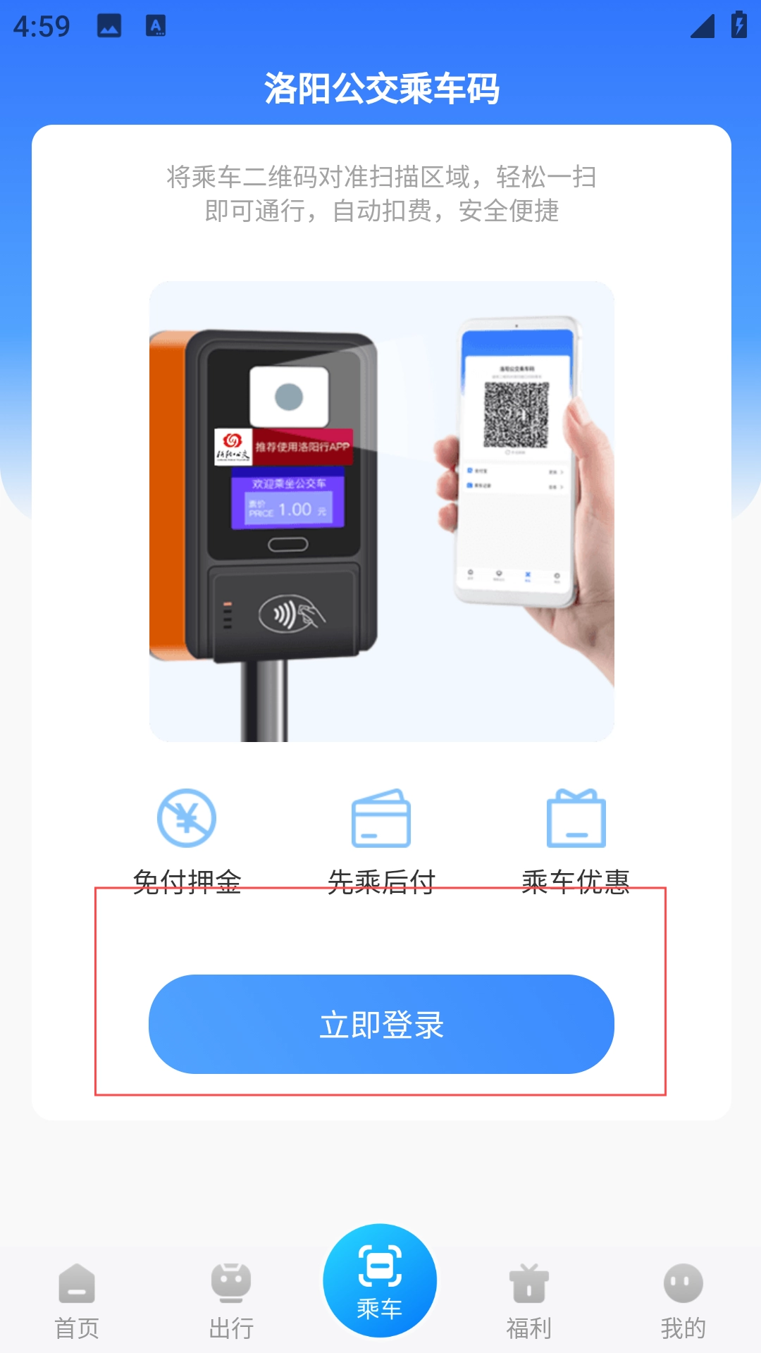 3、乘车时点击【乘车码】登录设备完成支付乘车。