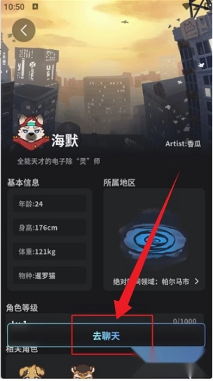 3、点击喜欢的角色,进入详情页,选择”去聊天”按钮,启动对话模式。