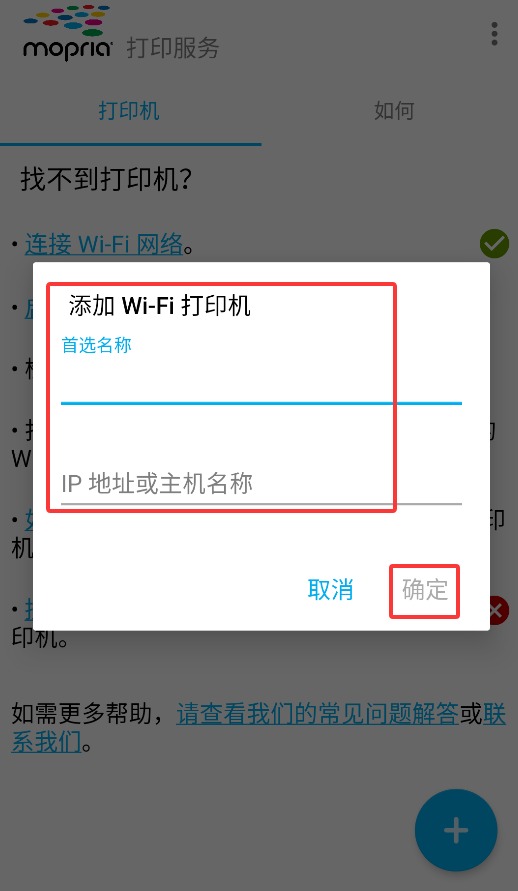 3、输入首选名称以及对应的IP地址或主机名称,就能快速添加指定Wi-Fi网络中的打印机。
